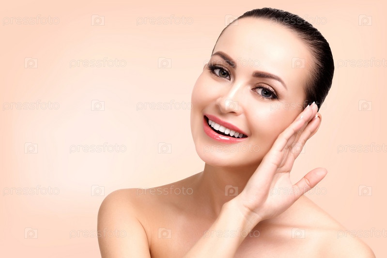 Вам улыбается красивая женщина с чистой и свежей кожей. Портрет красивой девушки