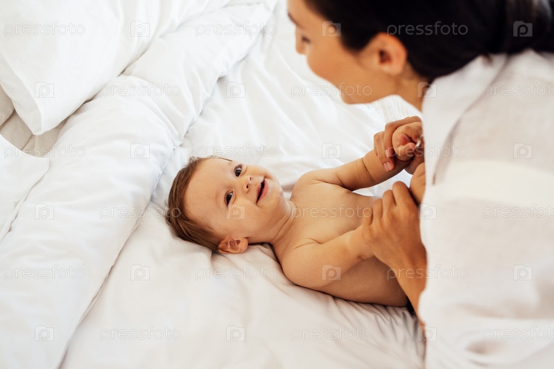 Портрет крупным планом молодой улыбающейся женщины и ее милого малыша