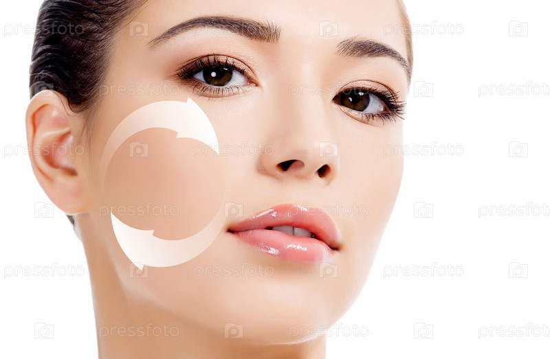 Лицо молодой женщины, концепция борьбы со старением, изолированное на белом фоне