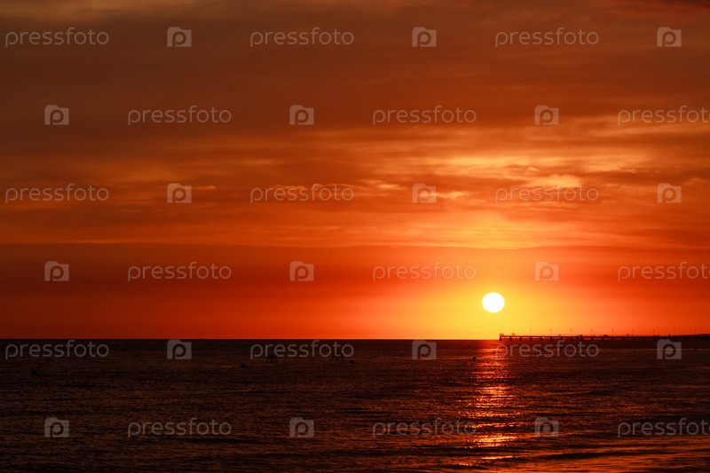 Красивый закат над морем с красивым цветным небом