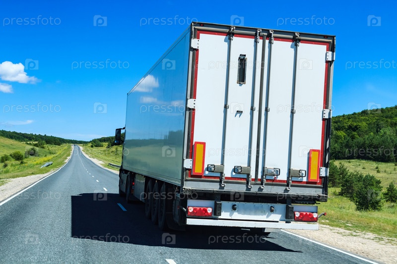 Изображение большого грузовика с прицепом, движущегося по шоссе