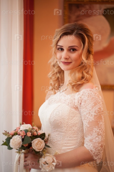 Утро с невестой, девушка на свадьбе с букетом цветов