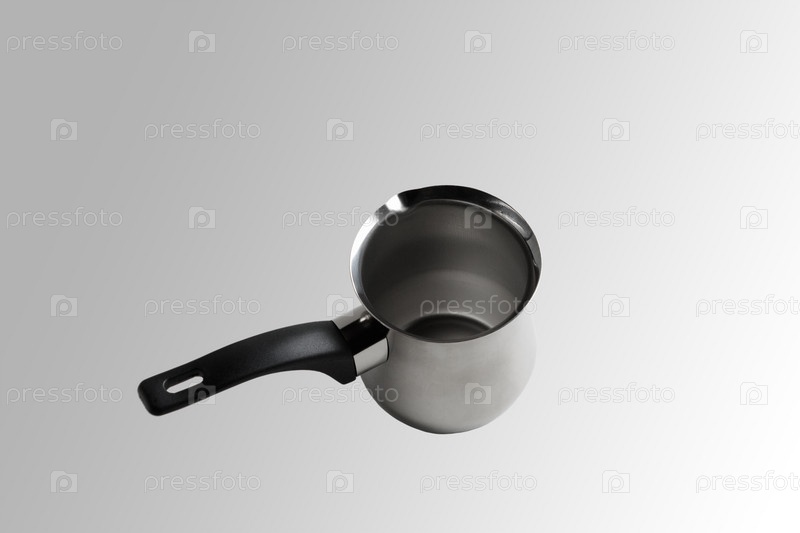 Турка для заваривания кофе металлическая. Крупный план. Изолированные на сером фоне