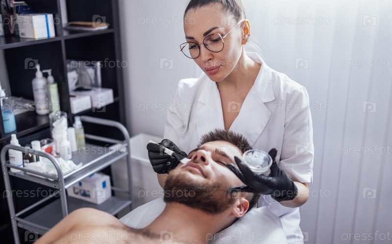 Подготовка кожи молодого человека к лазерной эпиляции лица