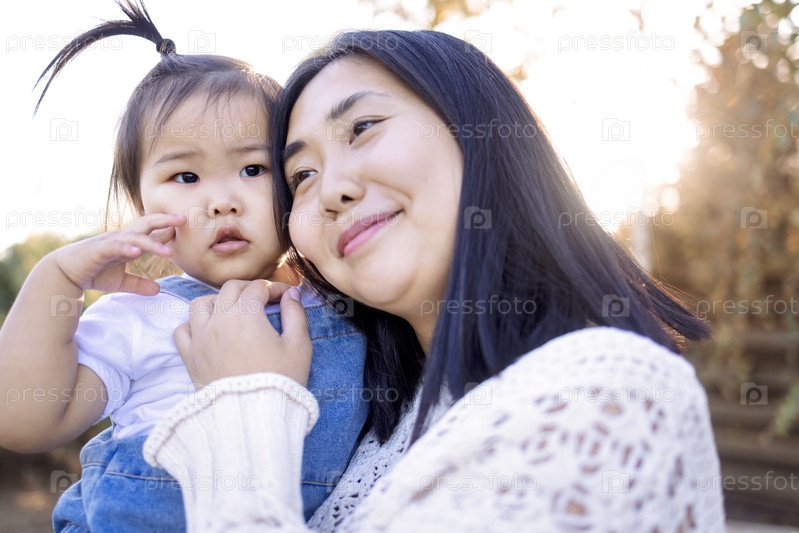 Привлекательная мама гуляет со своей милой девушкой на улице