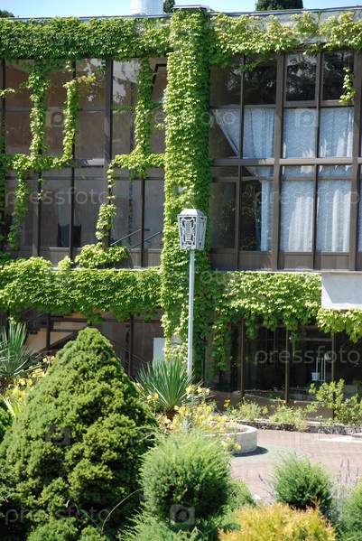 Фасад здания увитое растениями