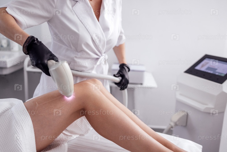 Процедура удаления волос. Обрезанный снимок молодой клиентки в хорошей форме, проходящей процедуру лазерной эпиляции