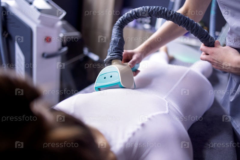 Косметолог, использующий аппарат для похудения LPG на телевидении