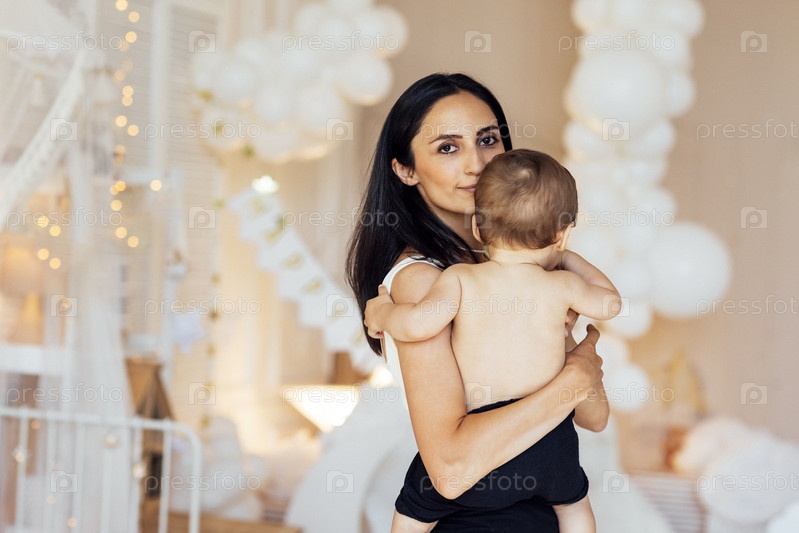 Портрет крупным планом очаровательной матери и ее милого мальчика дома