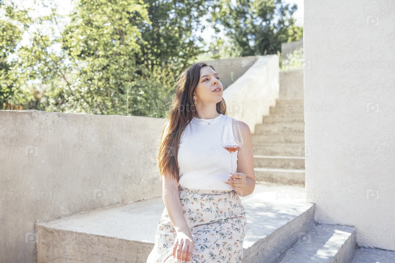 Красивая молодая женщина смешанной расы улыбается и держит бокал шампанского
