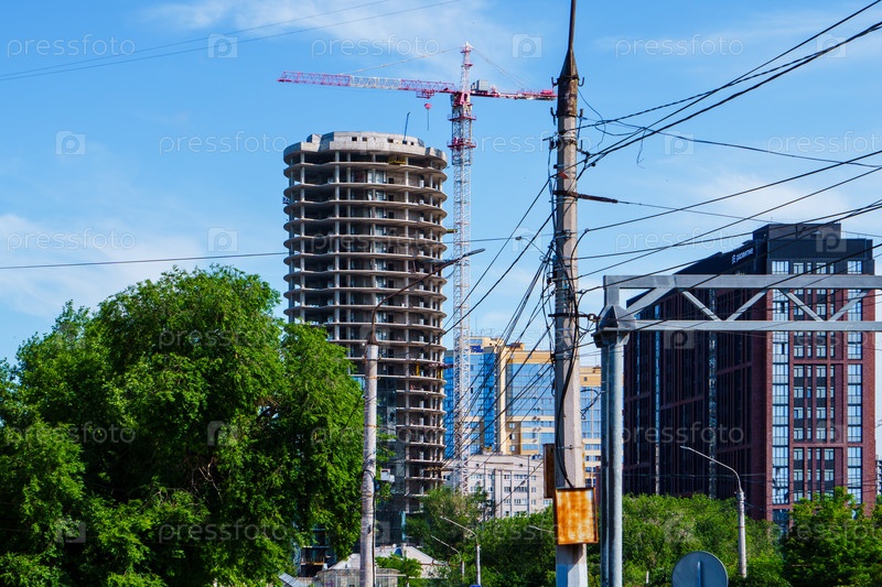 Городской пейзаж. Строительство высотки. Воронеж