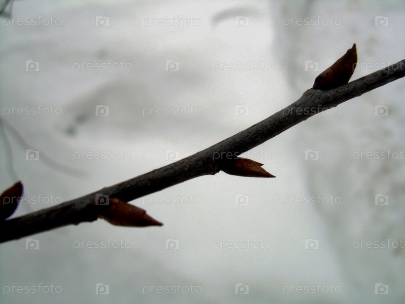 Почки на ветке крупным планом
