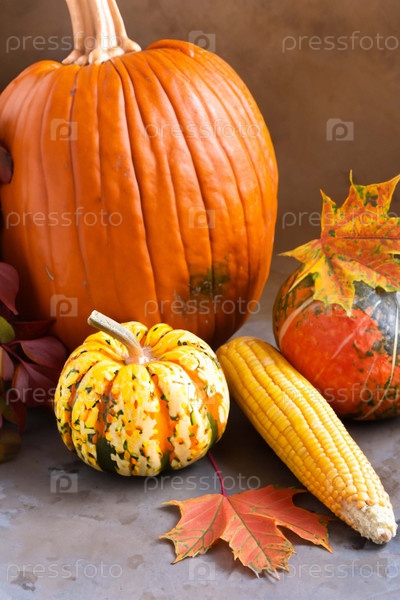 Натюрморт с кукурузой и тыквами