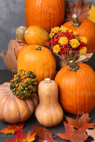 Натюрморт с кукурузой и тыквами