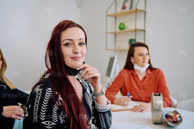 Встреча профессиональных женщин-предпринимателей, возглавляющих новые проекты в современном офисе
