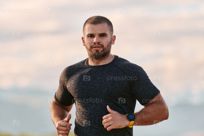 Спортсмен бегает под солнцем, готовя свое тело к экстремальным жизненным испытаниям