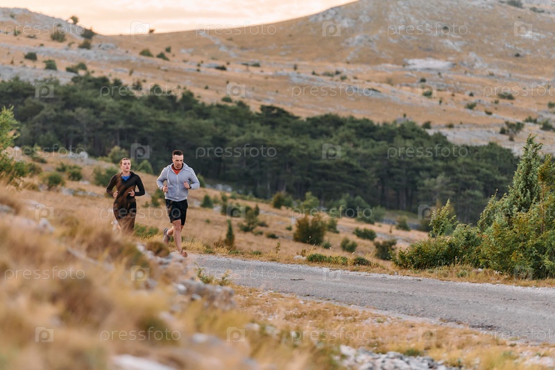 Бодрящая утренняя пробежка для пары в горах