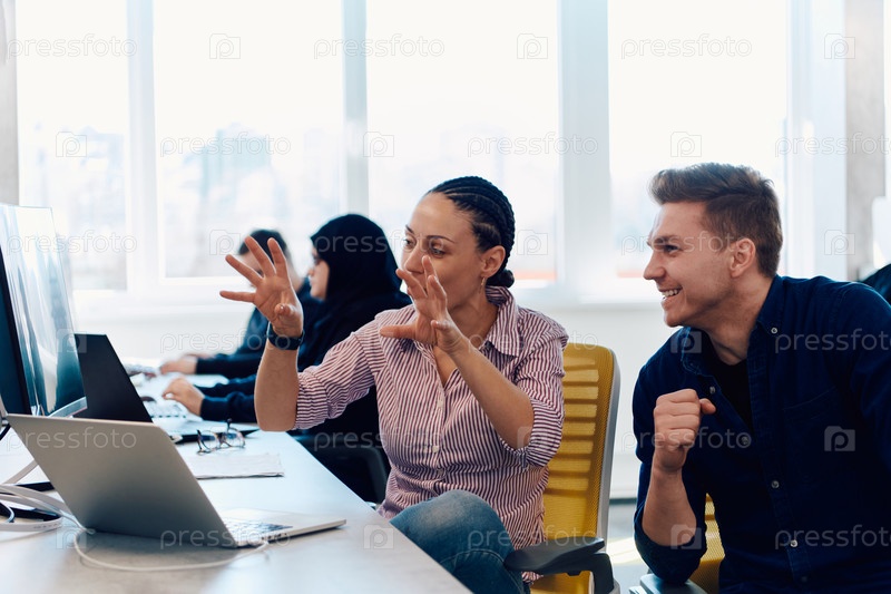 Совместный процесс мультикультурной квалифицированной молодой бизнес-команды во время мозгового штурма в офисе. Разнообразная группа молодых людей, одетых в формальную одежду, сотрудничает в разработке дизайн-проекта