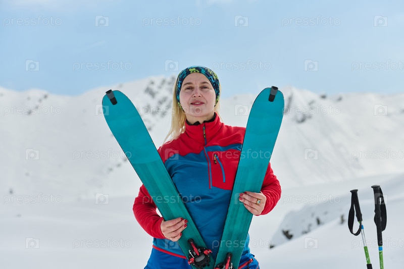 Покорение вершины: уверенный в себе лыжник празднует успех