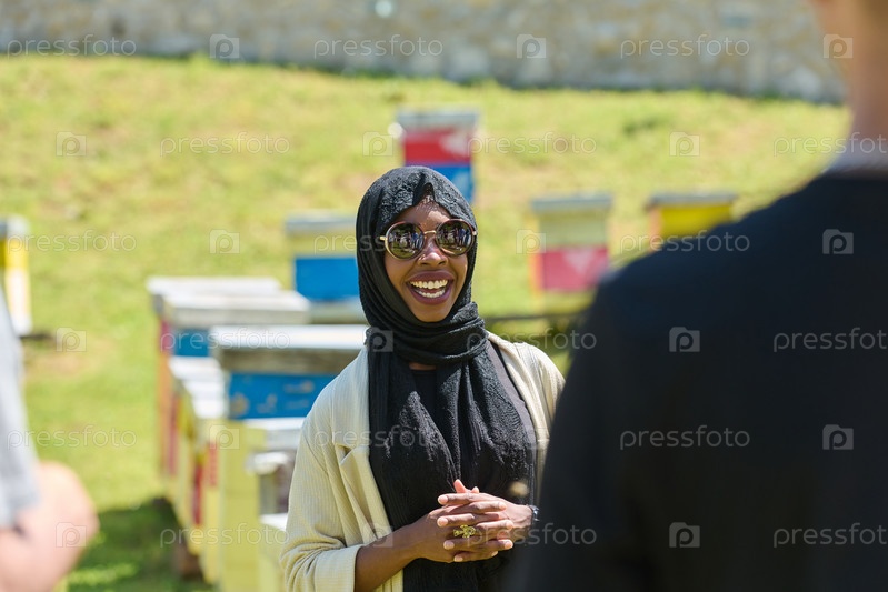 Разнообразная группа молодых друзей и предпринимателей изучает малые предприятия по производству меда в естественной сельской местности