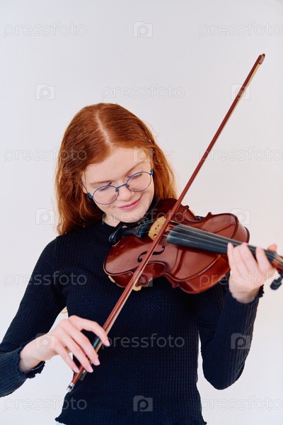Потрясающая рыжая музыкантша позирует со скрипкой на очаровательном портрете