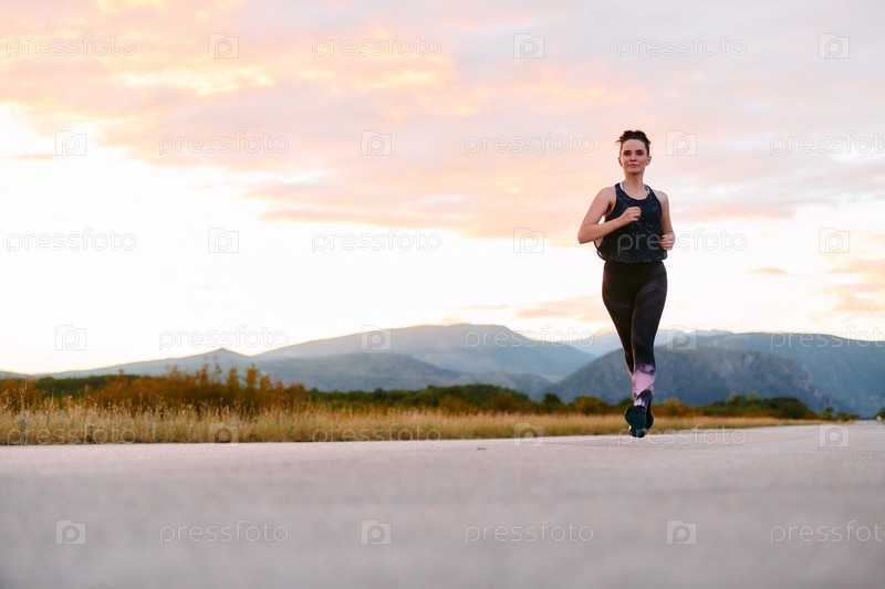 Решительный спортсмен бежит под солнцем среди красивой природы