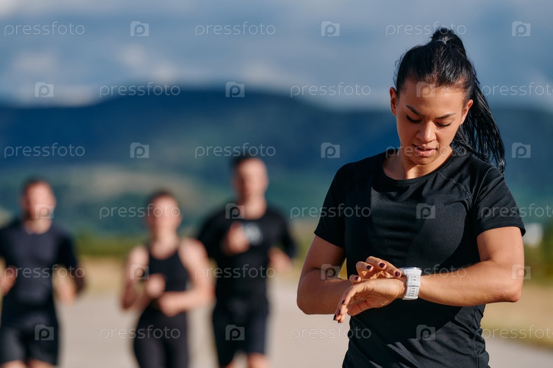 Лидер направляет спортсменов на забег в солнечный день