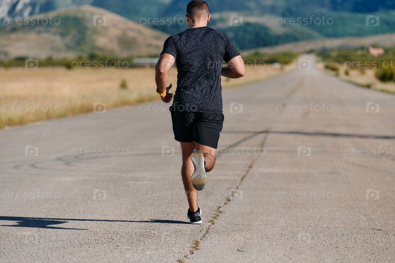 Спортсмен бегает под солнцем, готовя свое тело к экстремальным жизненным испытаниям