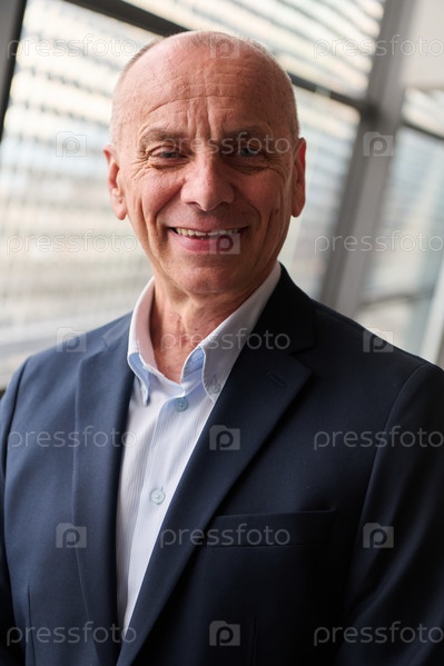 Портрет опытного бизнесмена в обстановке современной конференции