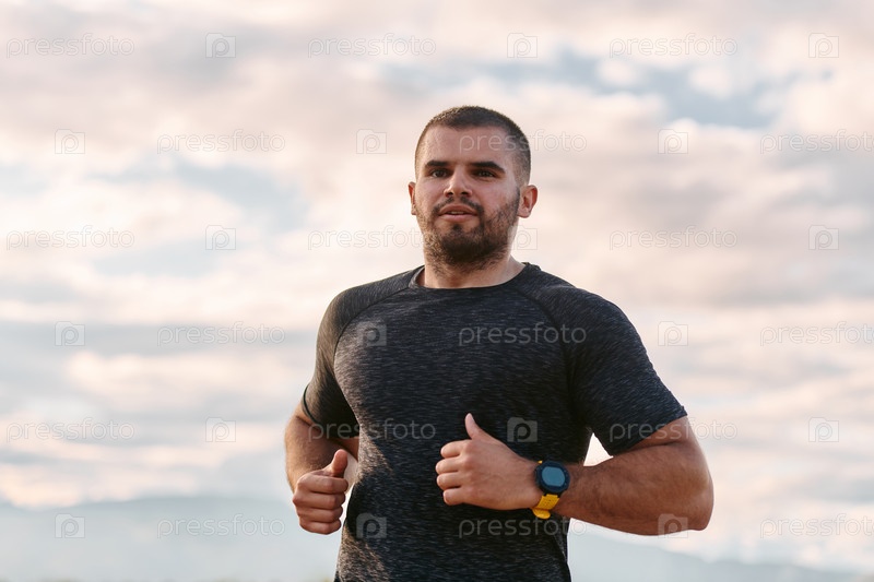 Спортсмен бегает под солнцем, готовя свое тело к экстремальным жизненным испытаниям