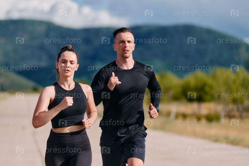 Пара, поддерживающая здоровый образ жизни, бегая в солнечный день
