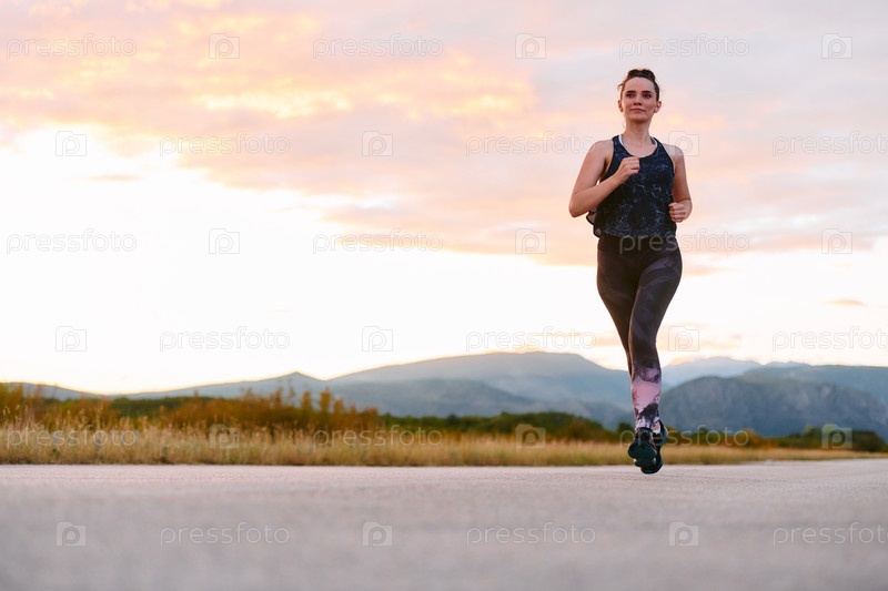 Решительный спортсмен бежит под солнцем среди красивой природы