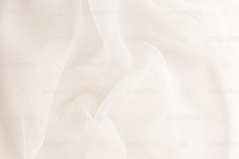 Нежные мягкие складки шифона, шелка, прозрачной ткани цвета шампанского, слоновой кости, бежевого цвета в качестве свадебного фона с копировальным пространством