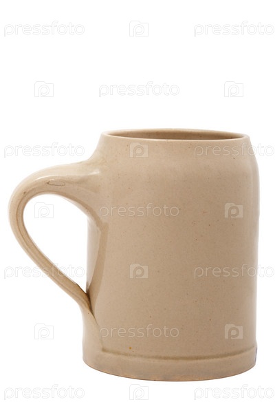 Керамическая пивная чашка на белом фоне
