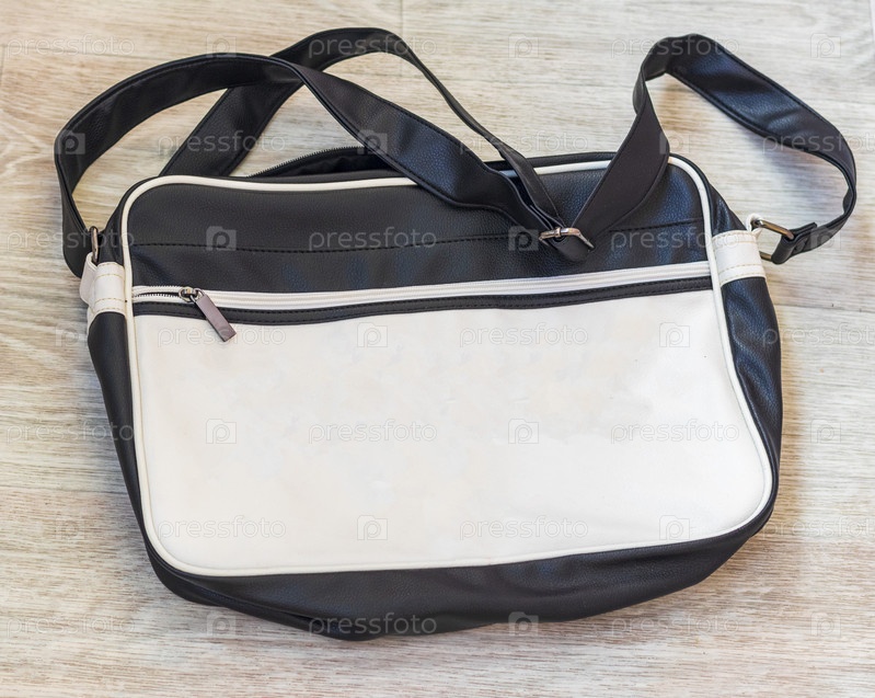 Крупный план двухтонированной сумки для ноутбука. Объект