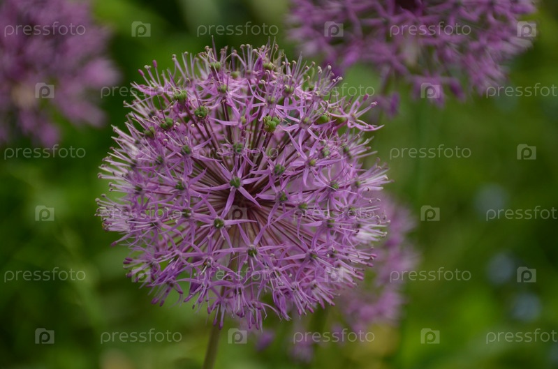 Фиолетовый цветок декоративного лука (лат. Allium) в крупном плане