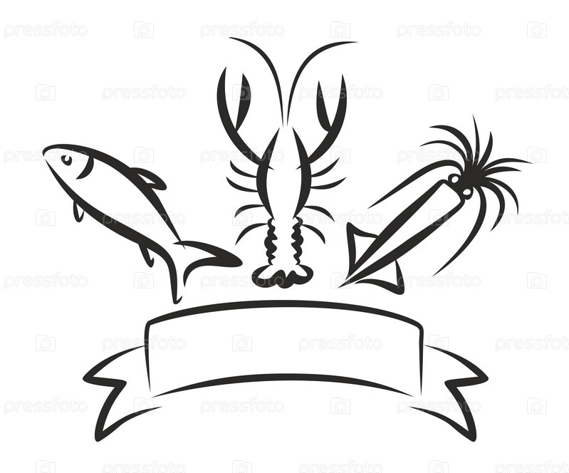 Логотип с лобстером, рыбой и кальмаром