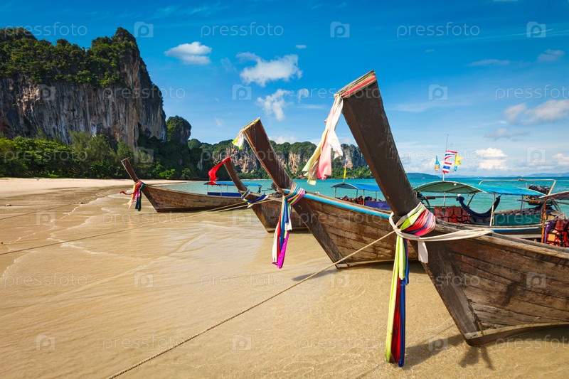 Лодки с длинным хвостом на пляже, Таиланд