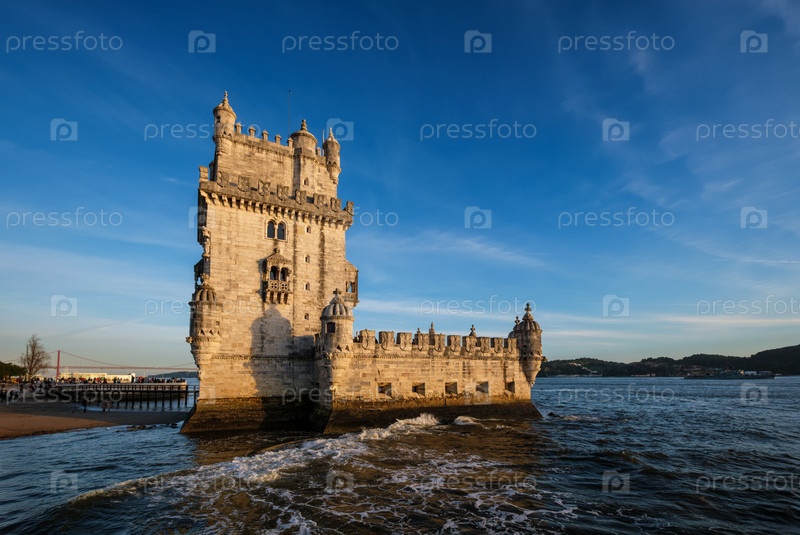 Башня Белен на берегу реки Тежу на закате. Лиссабон, Португалия