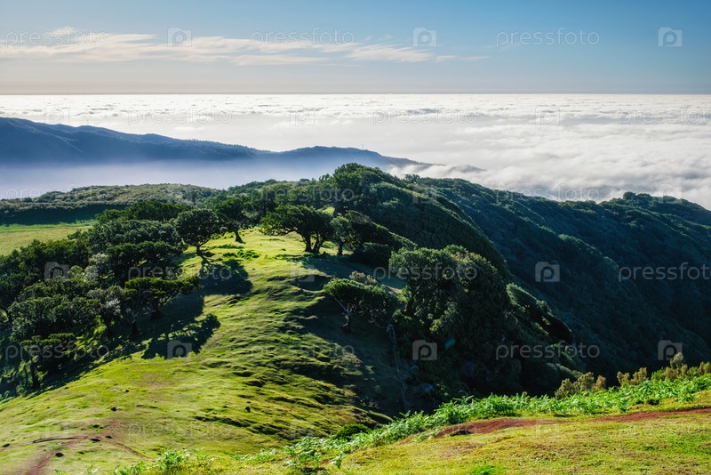Вид с воздуха на лесные деревья Фанал на острове Мадейра, Португалия