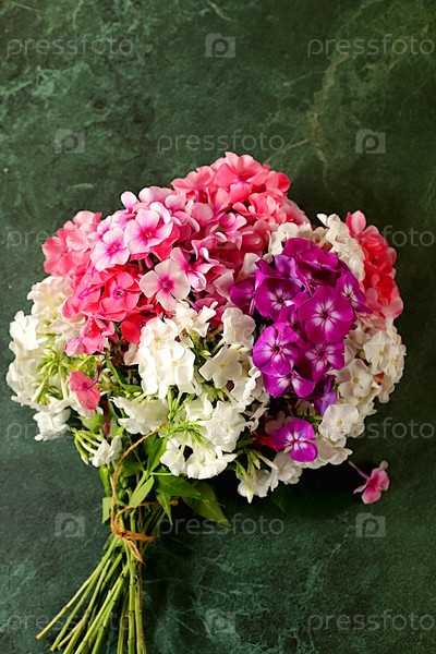 Букет цветов флокса на мраморном бетонном фоне, рекламный баннер летнего и осеннего продукта, абстрактная цветочная композиция, деревенский стиль, осенняя праздничная открытка,