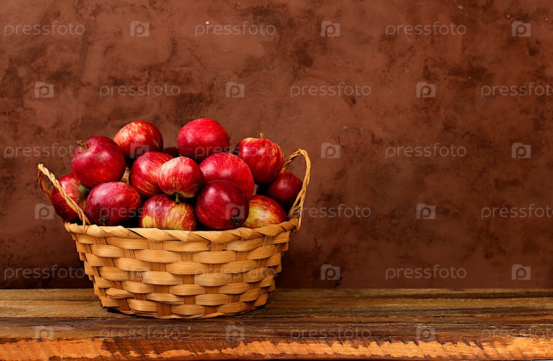 Медовые яблоки в корзине на деревянном фоне, сбор урожая в деревне, концепция здорового натурального питания, реклама магазина, визитная карточка кафе, избирательный фокус