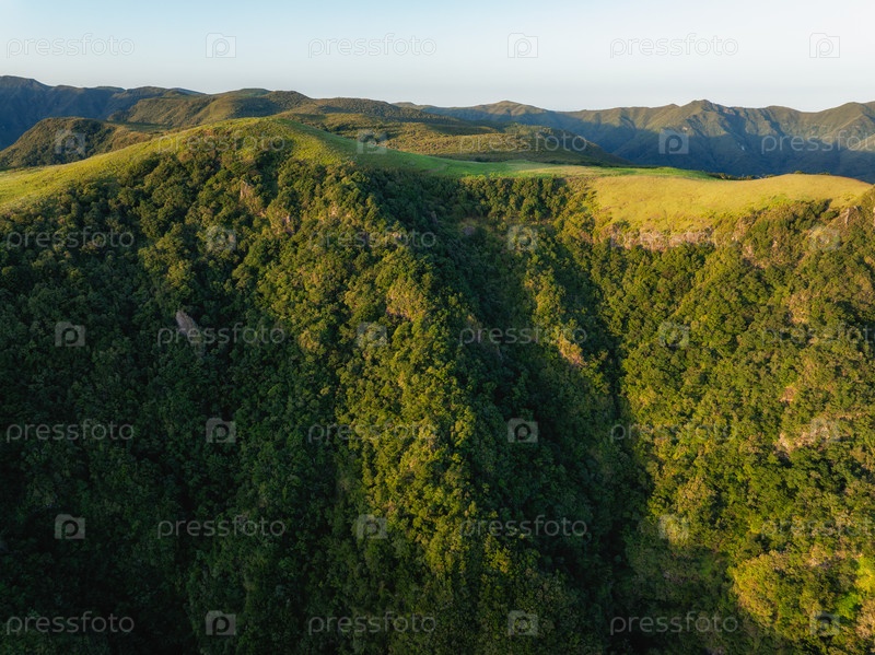 Вид с воздуха на зеленые холмы острова Мадейра, Португалия