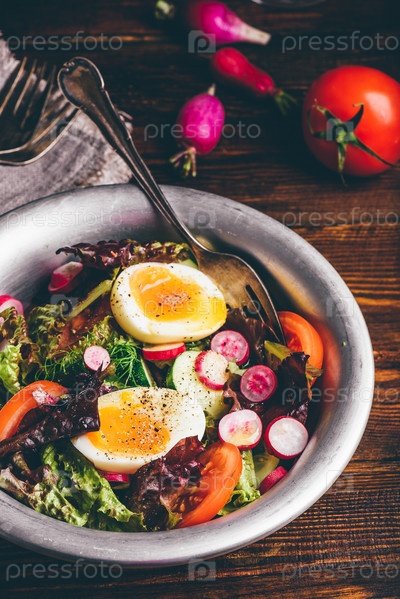 Свежий весенний салат с домашними овощами и вареными яйцами