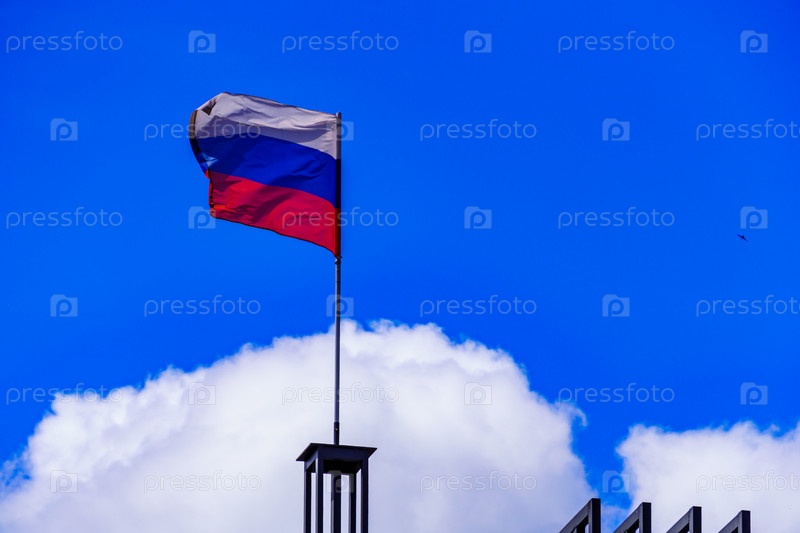 Городской пейзаж . Флаг России на здании бизнес-центра "Альянс". Воронеж