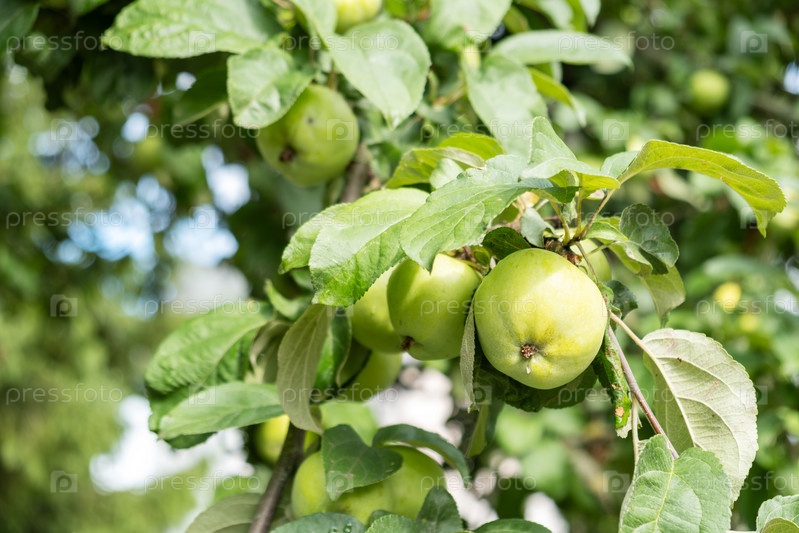 Спелые яблоки на ветке. Урожай, здоровое питание