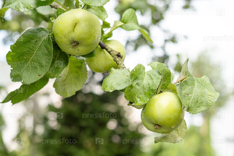 Спелые яблоки на ветке. Урожай, здоровое питание
