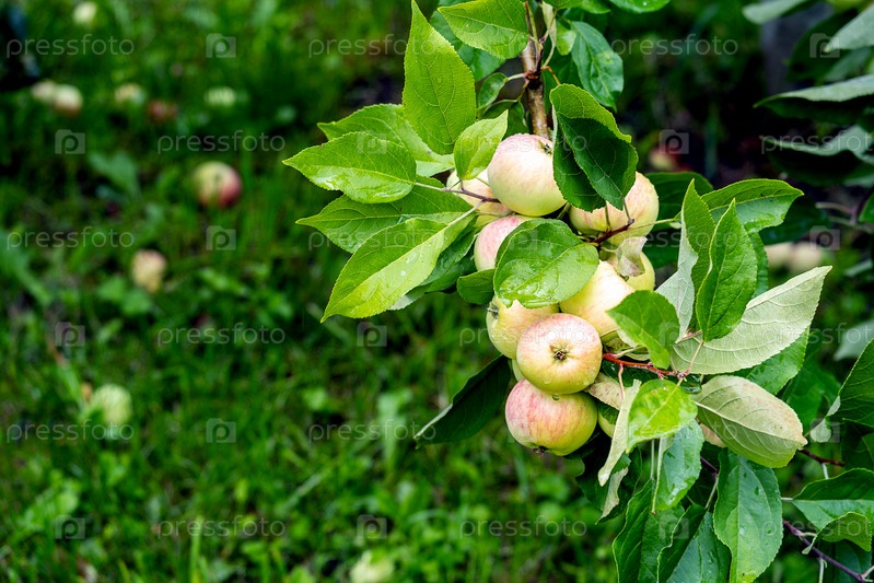Спелые яблоки на ветке. Урожай, здоровое питание