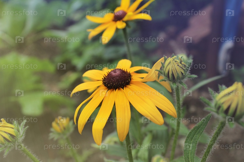 Рудбекия пилоза желтый цветок крупным планом. Желтые цветы летом