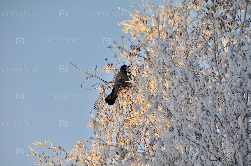Деревья покрытые инеем в первых лучах солнца
